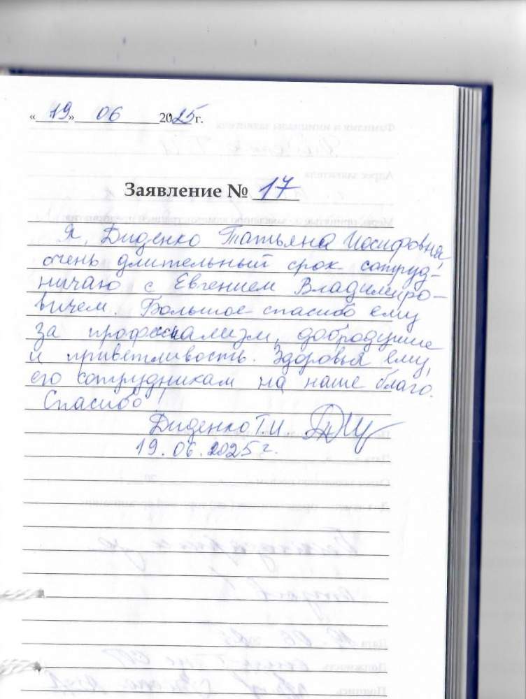Я, Диденко Татьяна Иосифовна , очень длительный срок сотрудничаю с Евгением Владимировичем. Большое спасибо ему за профессионализм, добродушие и приветливость. Здоровье ему, его сотрудникам на наше благо. Спасибо!. Диденко Т.И. 19.06.2025
