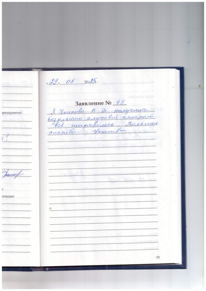 Я, Уханова ВФ, получила бесплатно слуховой аппарат, все понравилось. Большое спасибо.