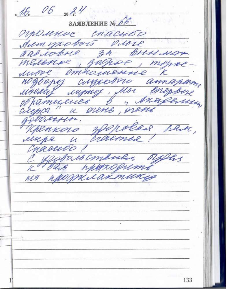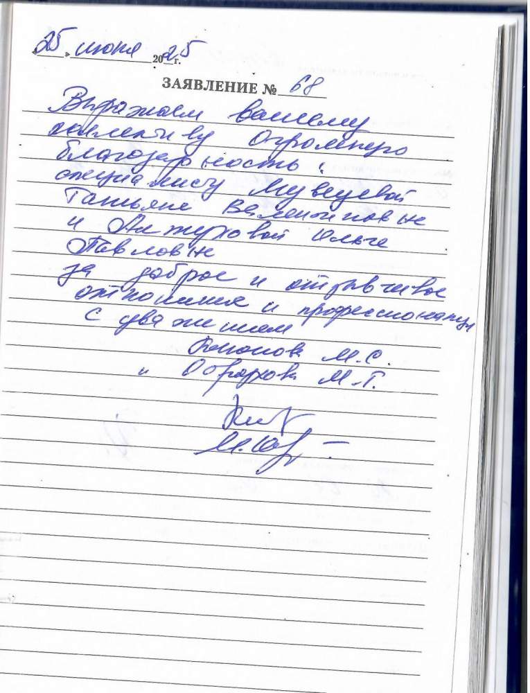 Выражаем вашему коллективу огромную благодарность. Медведевой Татьяне Валентиновне и Алтуховой Ольге Павловне за доброе и отзывчивое отношение и профессионализм.