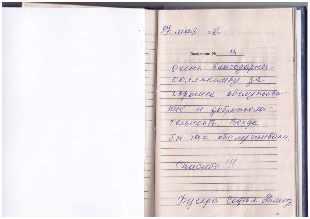 Очень благодарны коллективу за хорошее обслуживание и доброжелательность. Везде бы так обслуживали. Спасибо!!!