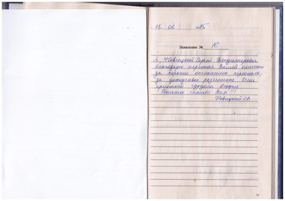 Я, Новицкий Сергей Владимирович благодарю персонал Вашей клиники за хорошее отношение персонала, за доходчивое разъяснение. Очень приятный сурдолог Альфия. Большое спасибо Вам !!!