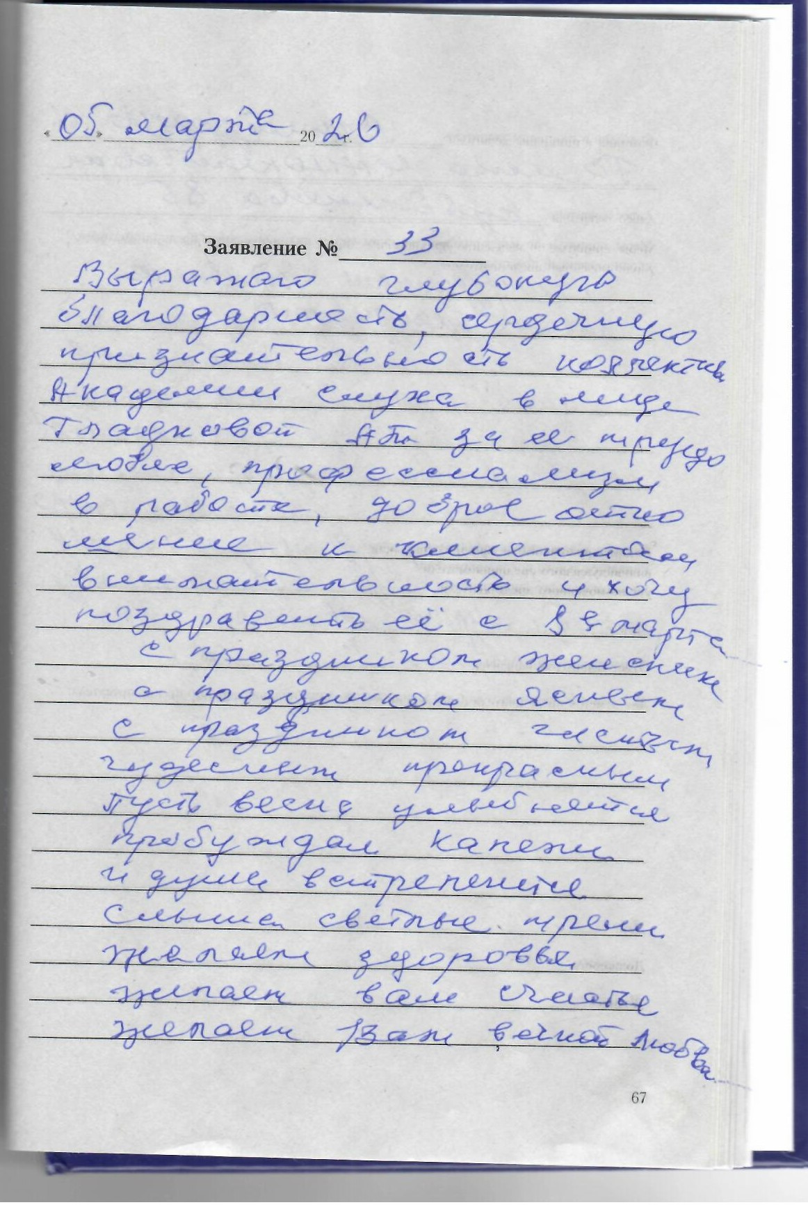Выражаю глубокую благодарность,сердечную признательность коллективу Академии слуха в лице Гладкой А.П. за ее трудолюбие,профессионализм в работе,доброе отношение к клиентам,внимание.Хочу поздравить ее с 8 Марта.С праздником женским,с праздником ясным,с праздником чудесным и прекрасным.Пусть весна улыбнется пробуждением капели и душа встрепенется слыша светлые трели.Желаю здоровья,желаю вам счастья,желаем вам вечной любви.