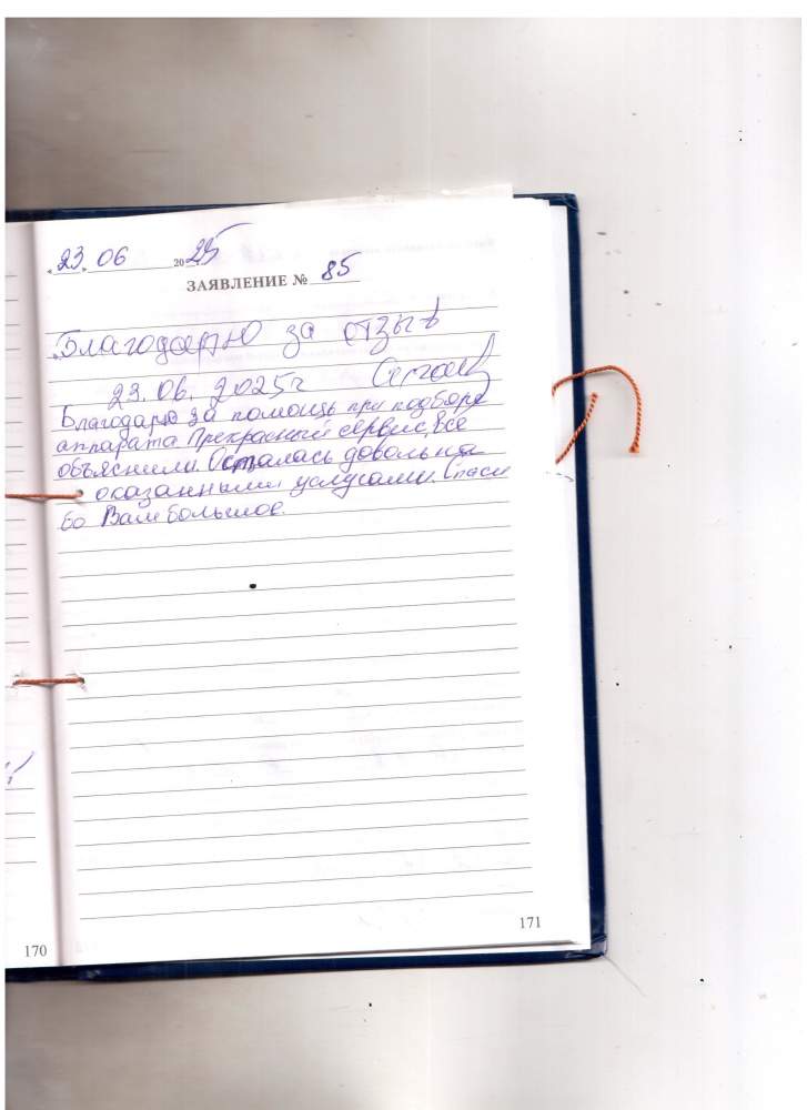 Благодарю за помощь при подборе аппарата. Прекрасный сервис, все объяснили. Осталась довольна оказанными услугами. Спасибо вам большое. 23.06.2025