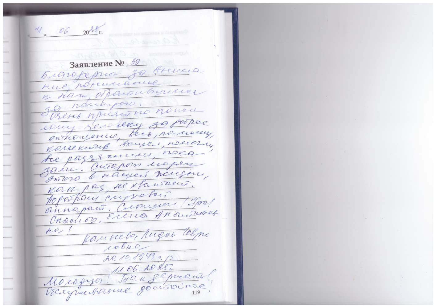 Благодарю от всего сердца за внимание, чуткость и профессиональным отношением.