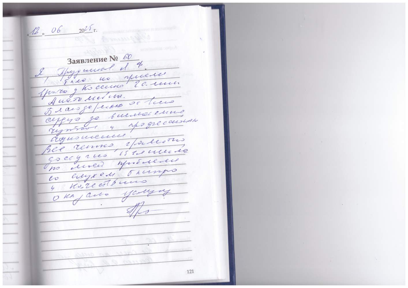 25.06.25 Был на приеме в "Академии слуха". Благодарен за вежливый, теплый прием, за доходчивое и полное объяснение сотрудников. Пусть всегда будет так.