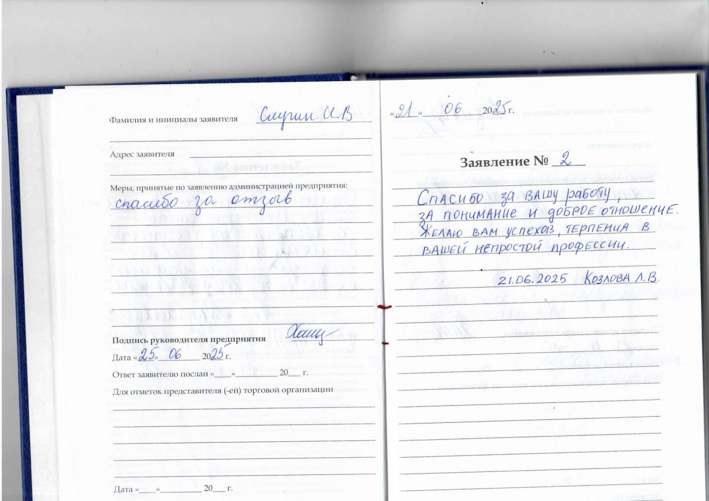 Заявление № 2