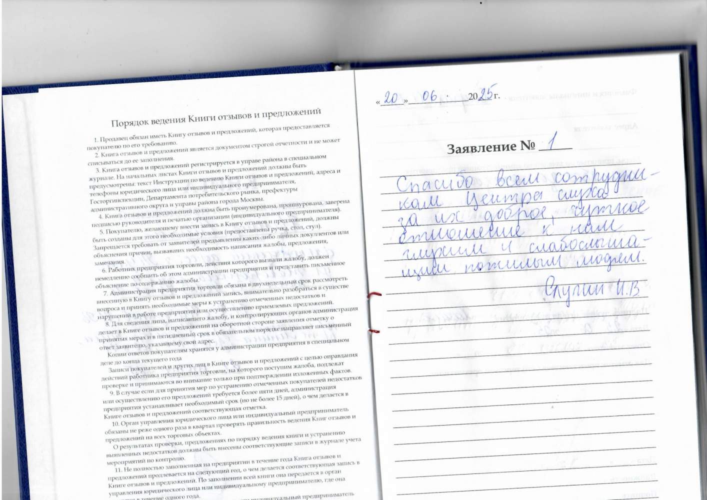 Заявление № 1