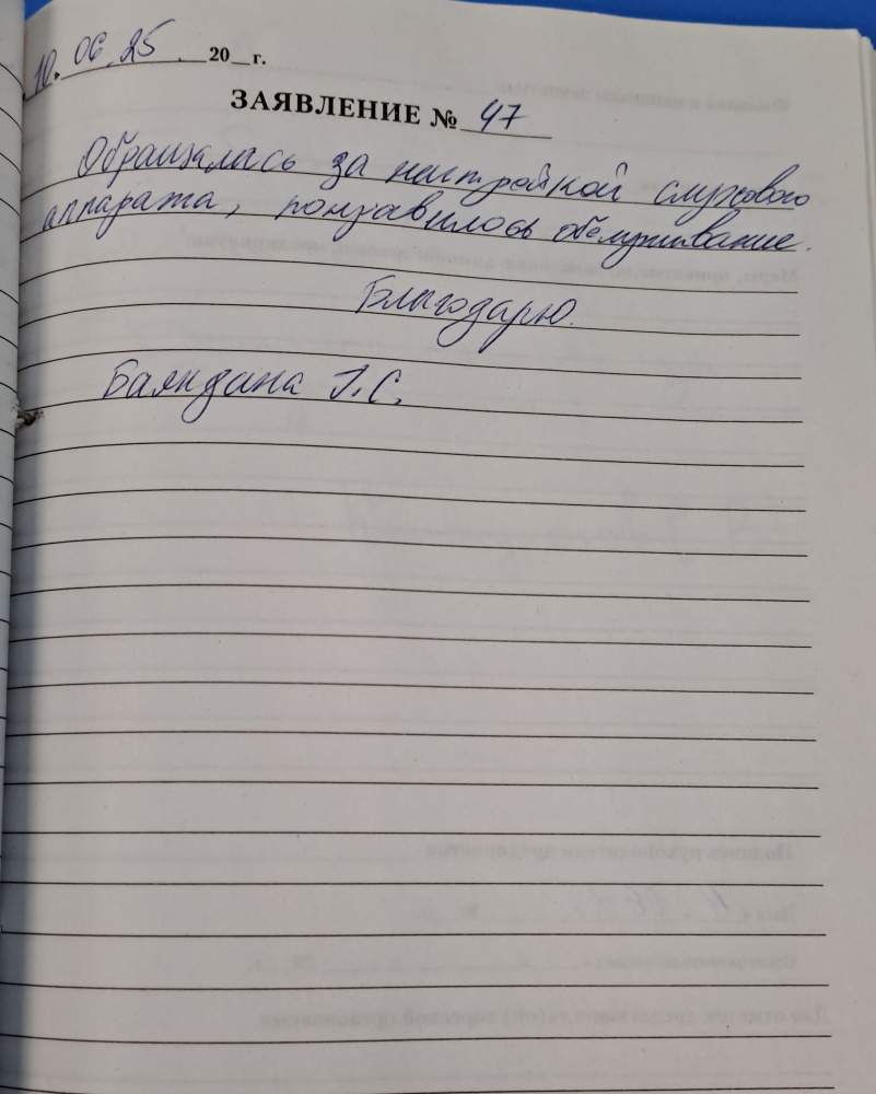 Спасибо девчатам за работу. Получил слуховые аппараты бесплатно, столько внимания и улыбок сделали мой день радостным.