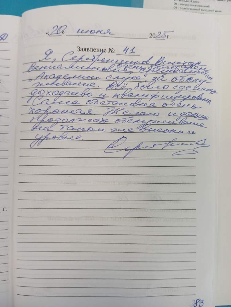 Я Серебренников Виктор Вениаминович очень благодарен специалистам " Академии слуха" за обслуживание. Всё было сделано доходчиво и квалифицированно. Сама обстановка очень хорошая. Желаю и дальше продолжать обслуживание на таком же высоком уровне.