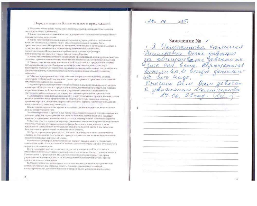 Я Исмагилова Халима Нигаматовна. Очень довольна за обслуживание девочками, то что они всегда обращаются вежливо. И всегда делают, то что надо.