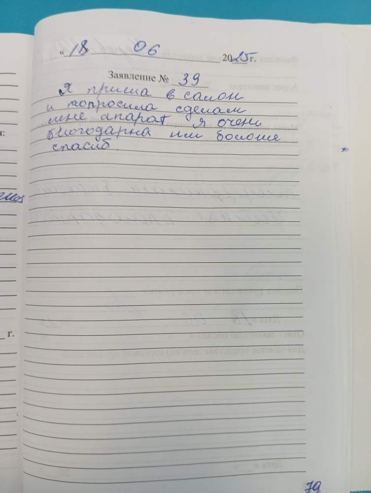 Я пришла в салон и попросила сделать мне аппарат. Я очень благодарна им, большое спасибо.