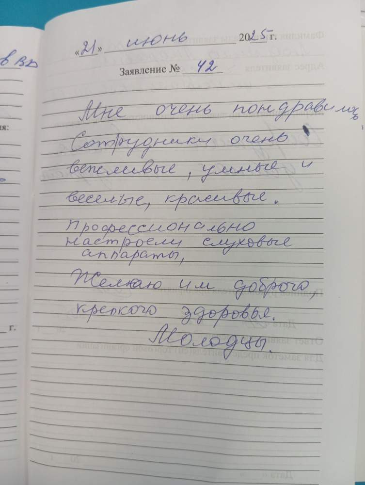 Выражаем благодарность за такой чуткий прием в Академии слуха.Обратились с проблемой плохого слуха, теперь только к вам, т.к. имеем еще родственников с проблемой.