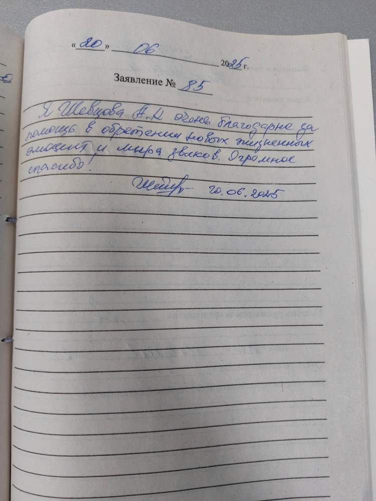 Я Шевцова А.К. очень благодарна за помощь в обретении новых жизненных эмоций и мира звуков. Огромное спасибо!