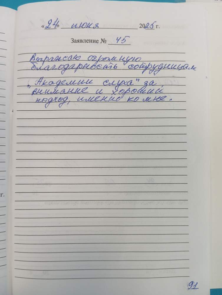Выражаю огромную благодарность сотрудникам "Академии слуха" за внимание и хороший подход именно ко мне.