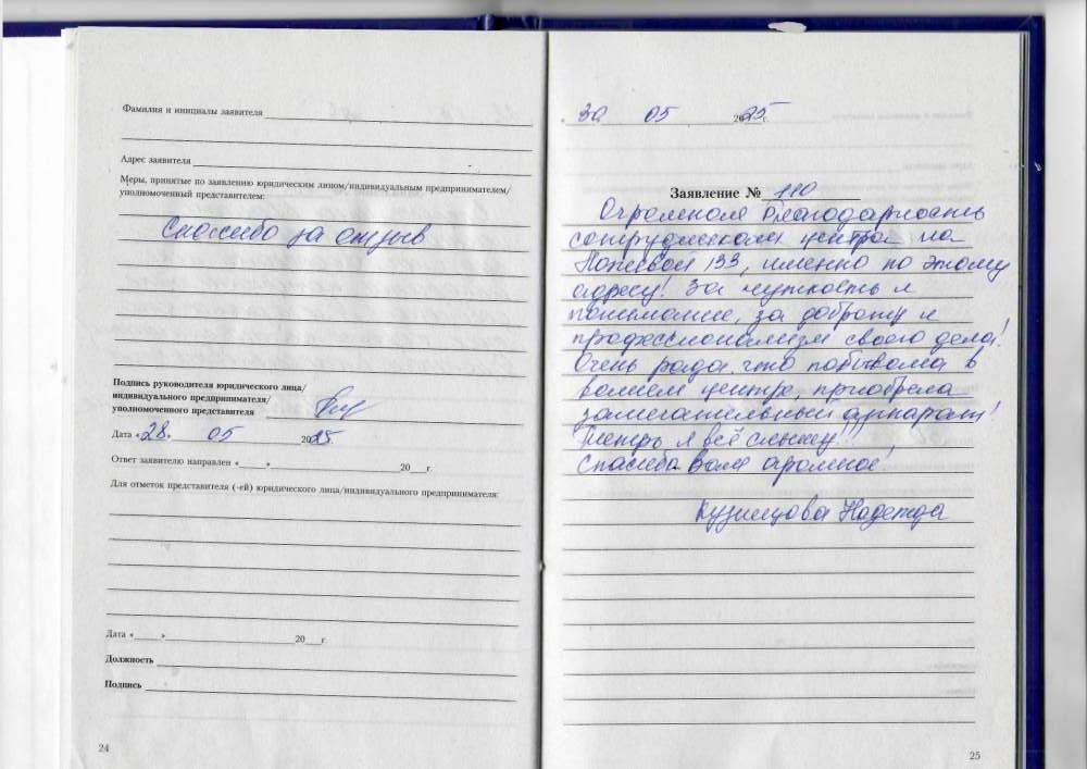 Благодарность всем сотрудникам за теплоту, отношение. Всегда помогаете. Спасибо вам!