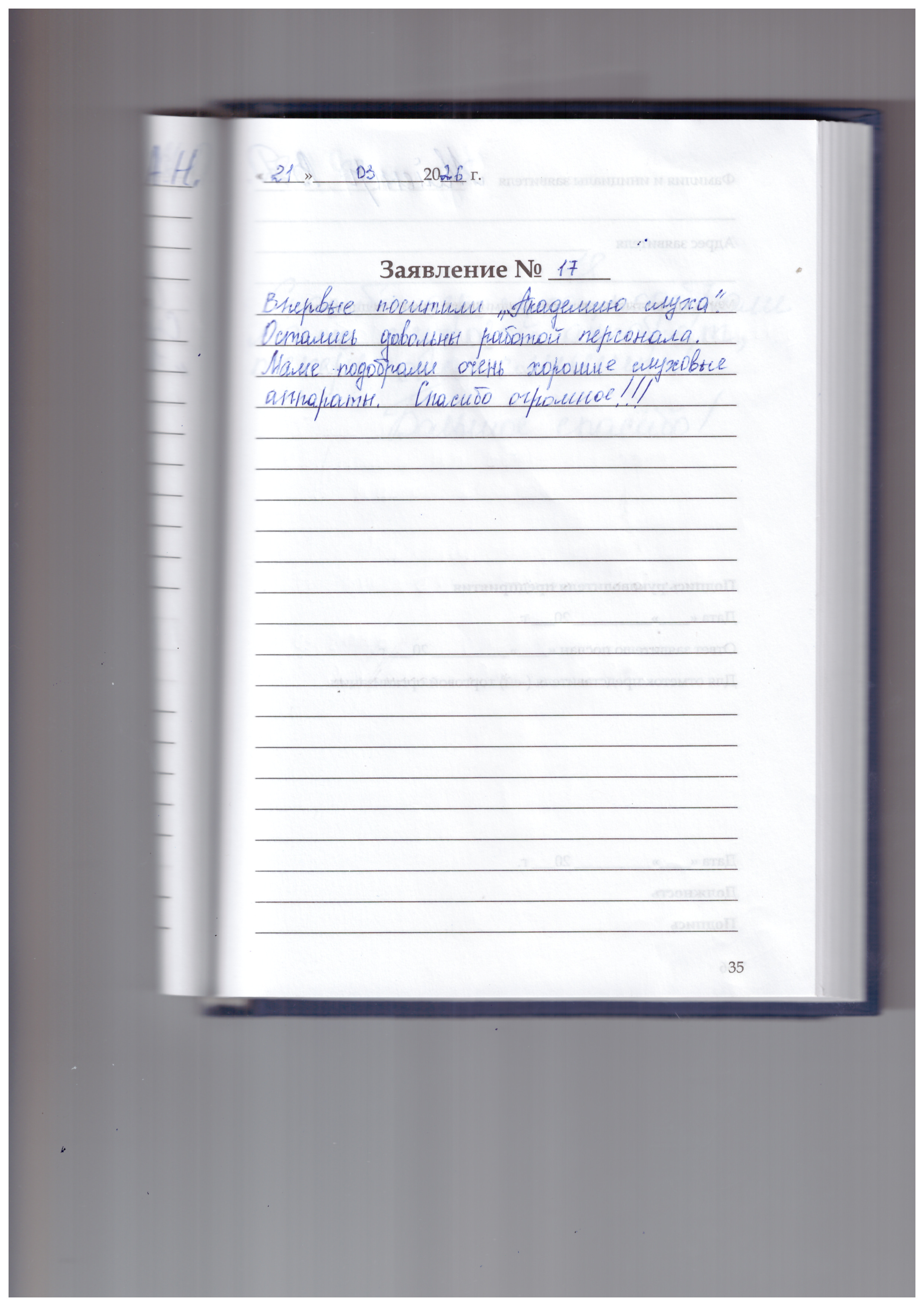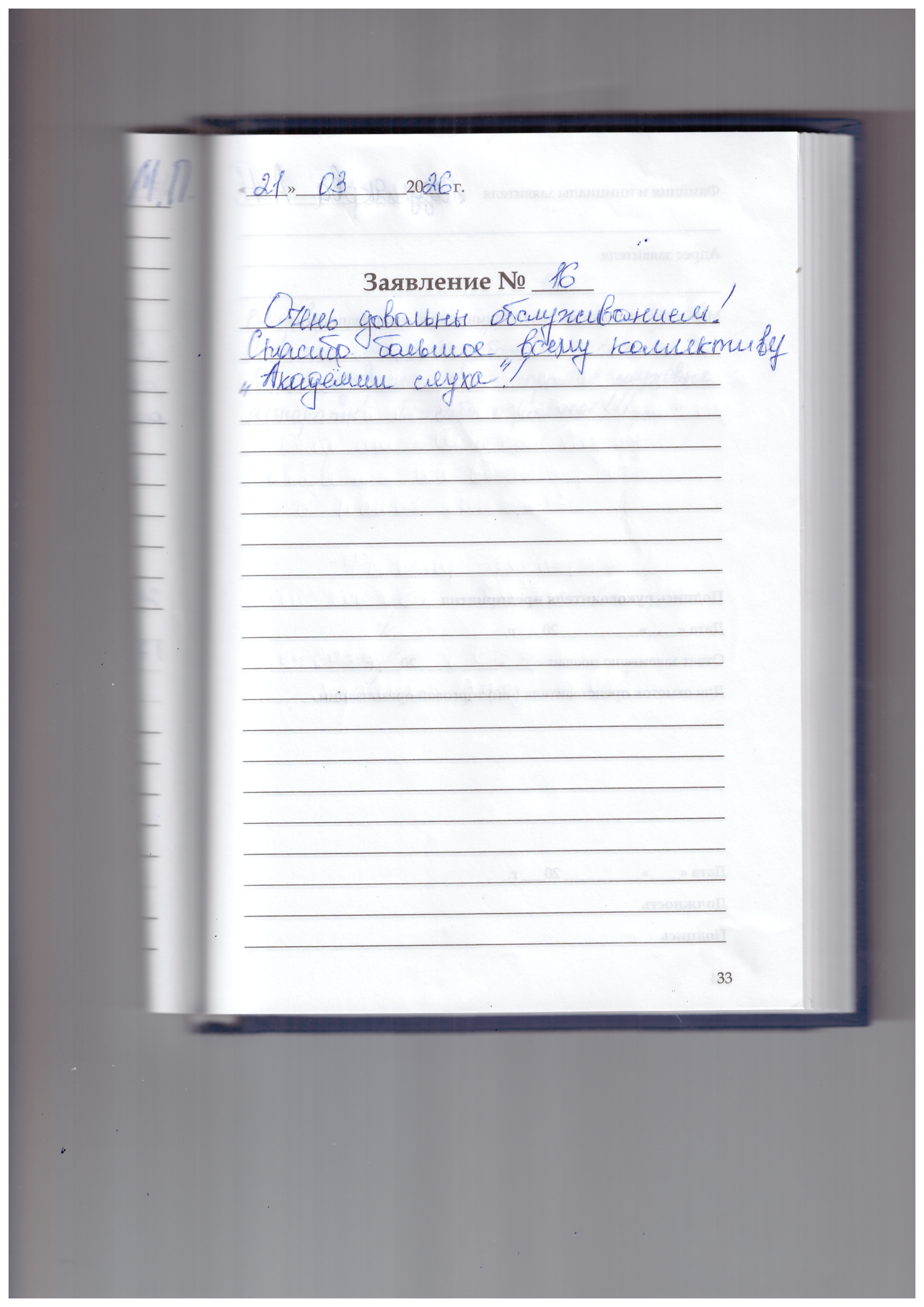 Очень довольны обслуживанием! Спасибо большое всему коллективу “Академии слуха”!
