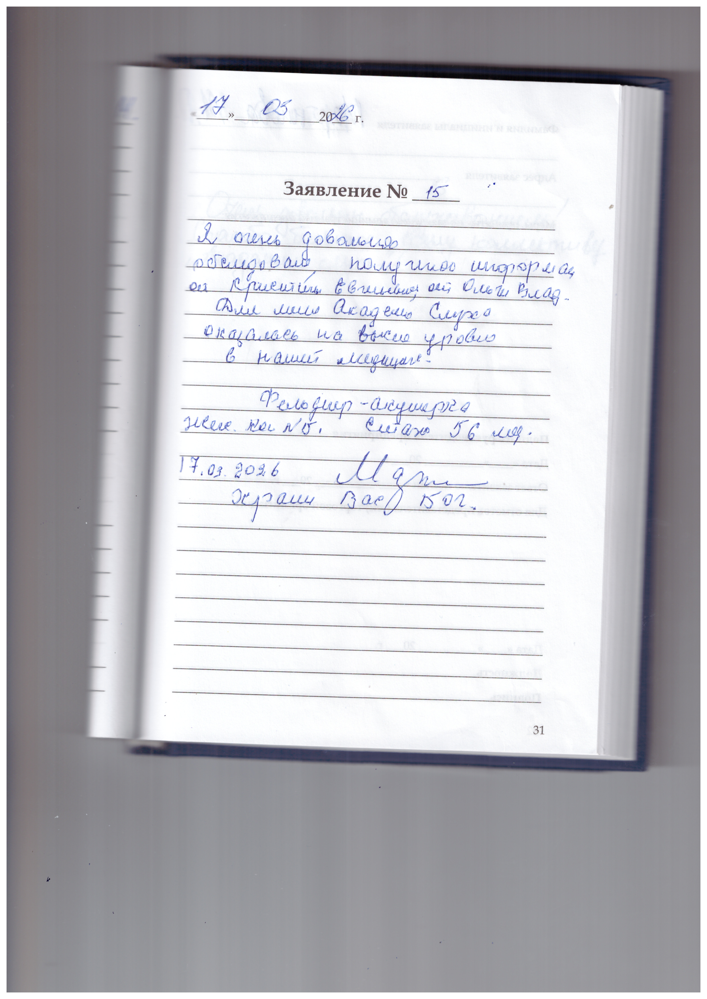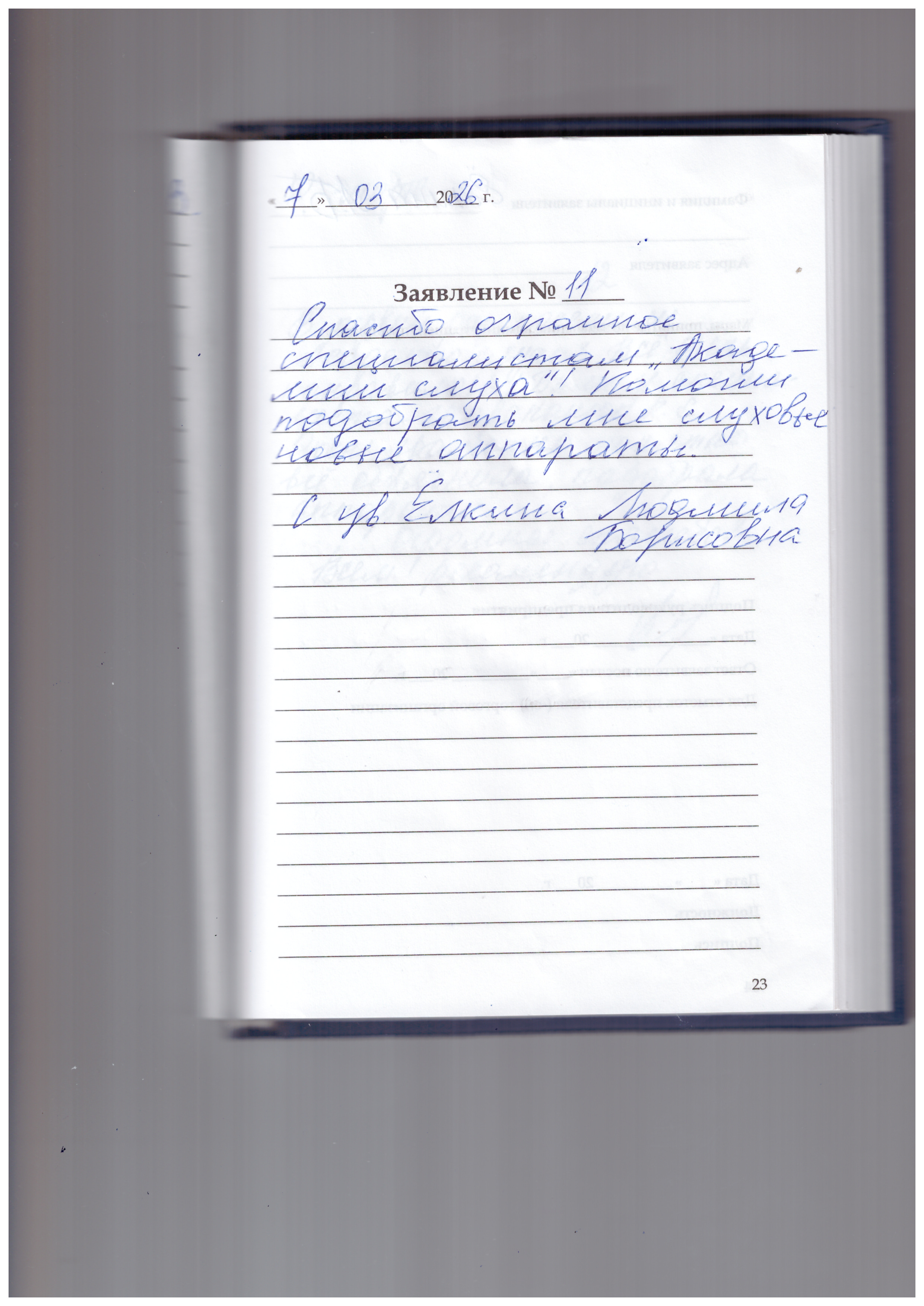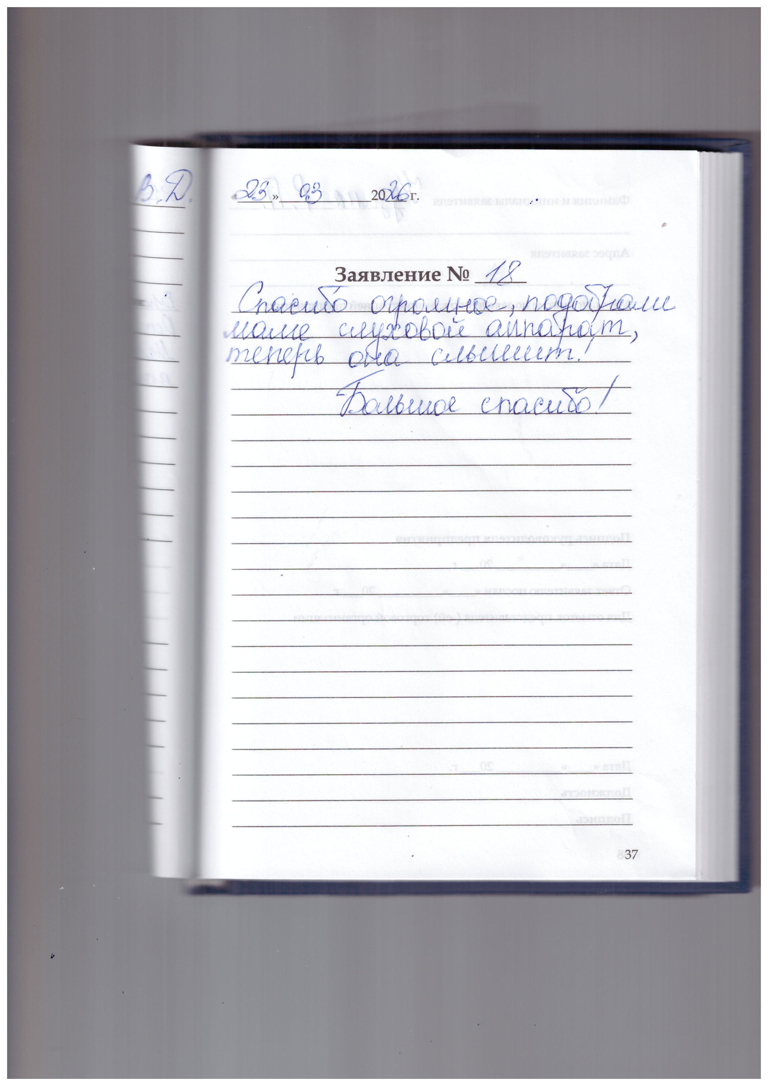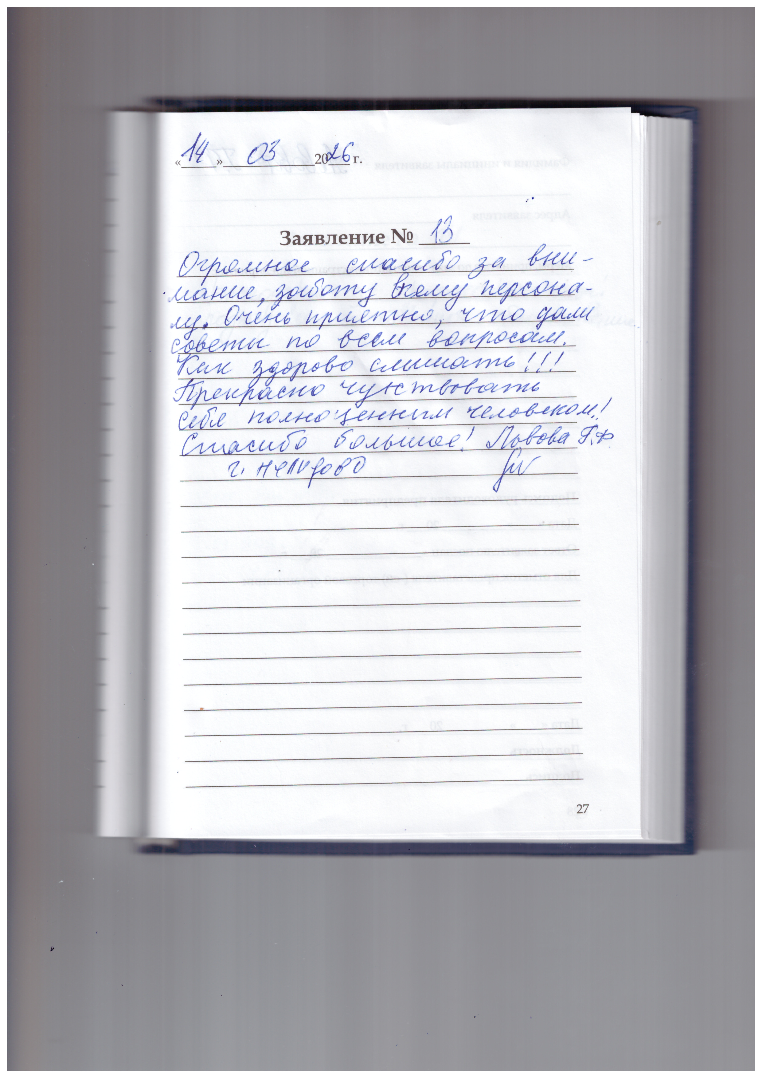 Огромное спасибо за внимание, заботу всему персоналу. Очень приятно, что дали советы по всем вопросам. Как здорово слышать!!! Прекрасно чувствовать себя полноценным человеком! Спасибо большое! Львова Г.Ф г. Нелидово.