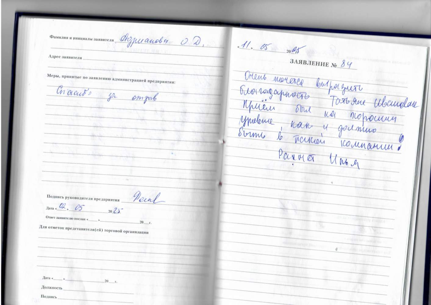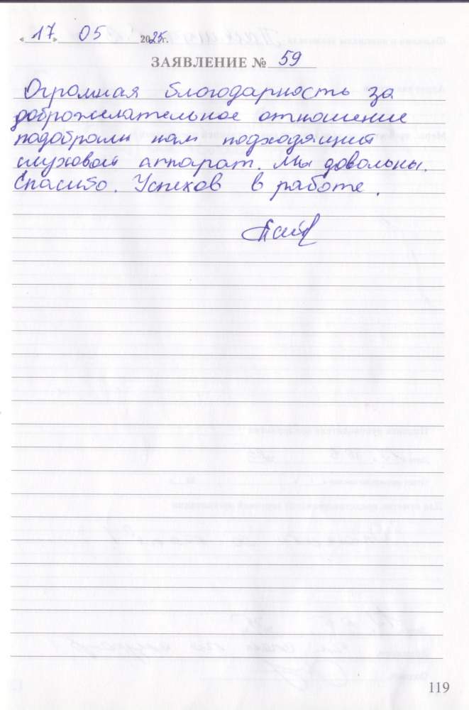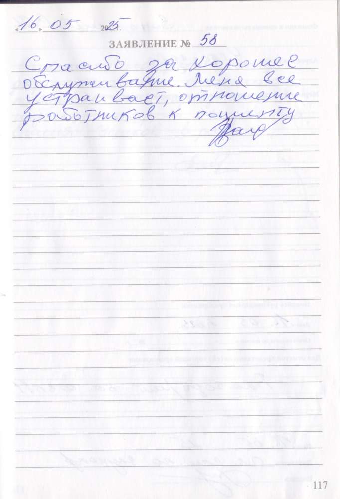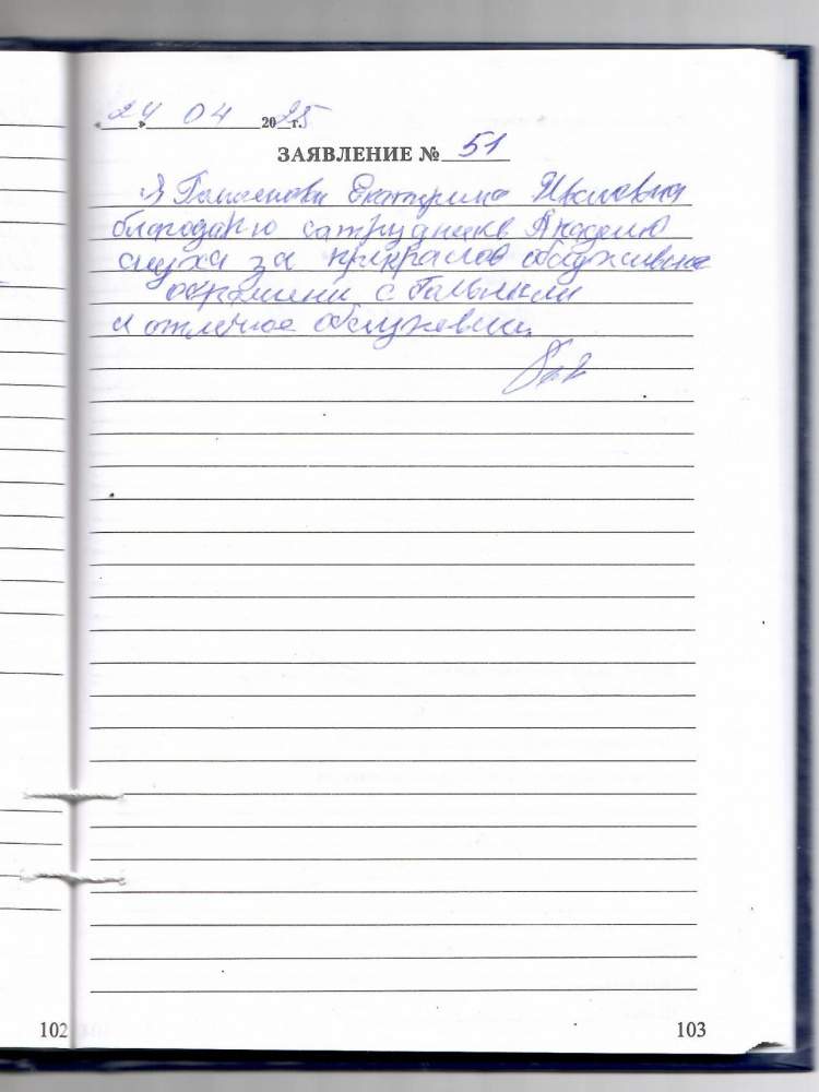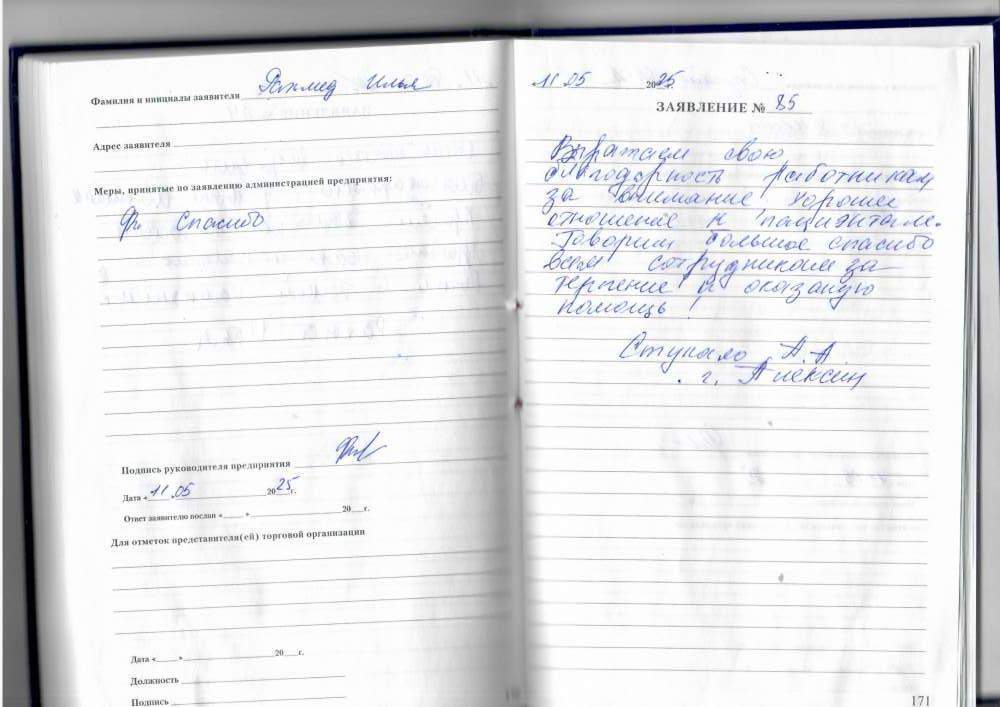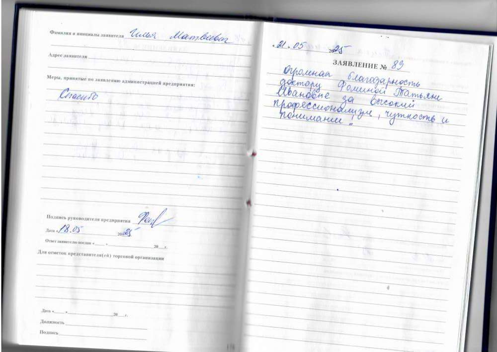 Спасибо за хорошее обслуживание. Меня все устраивает, отношение работников к пациенту.
