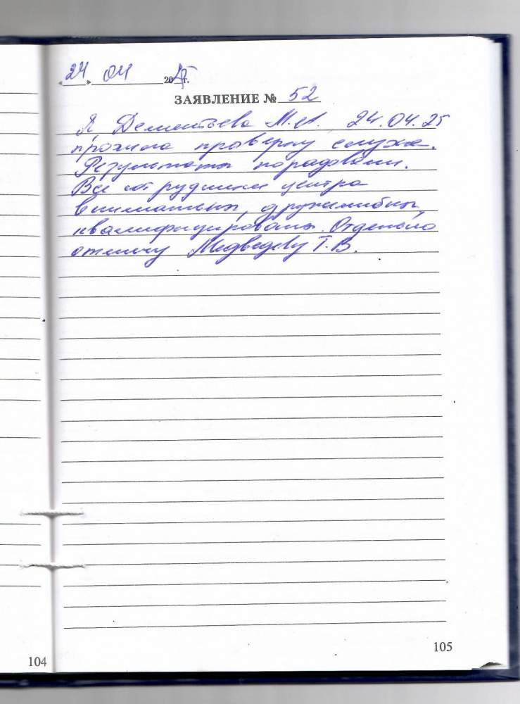 Я, Дементьева М.А., 24.04.25 прошла проверку слуха. Результаты порадовали. Все сотрудники центра внимательны и дружелюбны, квалифицированы. Отдельно отмечу Медведеву Т.В.