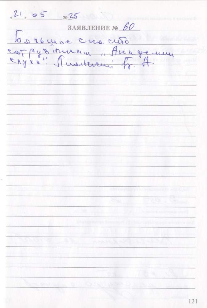 Я, Гомоенова Екатерина Ивановна, благодарю сотрудников «Академии слуха» за прекрасное обслуживание, обращение с больными и отличное обслуживание.