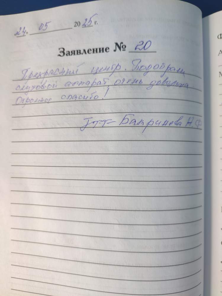 24.05.2025 Проводили тест слуха. Все хорошо. Понравилось. Спасибо большое.