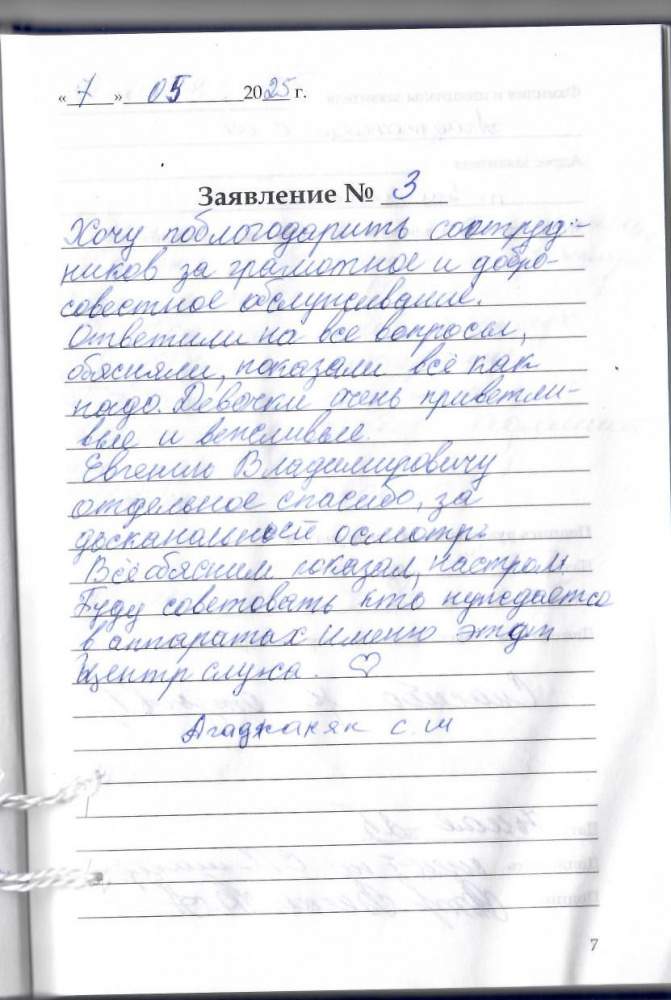 Хочу поблагодарить сотрудников за грамотное и добросовестное обслуживание. Ответили на все вопросы, объясняли, показали все как надо. Девочки очень приветливые и вежливые. Евгению Владимировичу отдельное спасибо за доскональный осмотр. Все объяснил, показал,настроил. Буду советовать, тем кто нуждается в аппаратах, именно этот Центр Слуха. Агаджанян Сурен Шураевич
