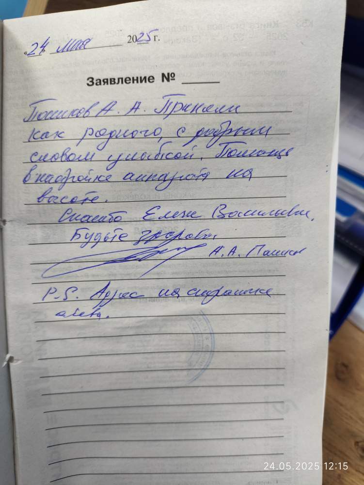 Приняли как родного, с добрым словом и улыбкой. Помощь в настройке аппарата на высоте. Спасибо Елене Васильевне. Будьте здоровы.