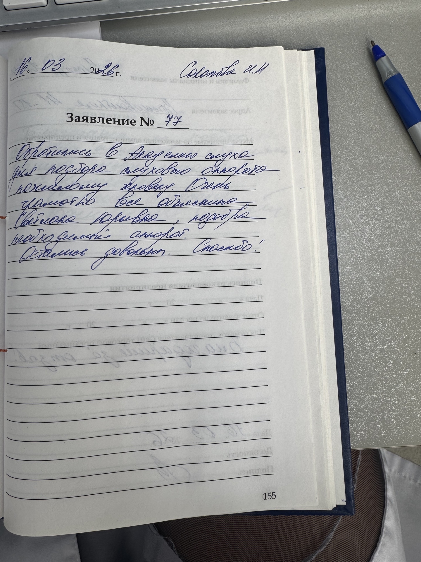 Пришли на прием для изготовления ушных слепков для вкладышей. Прием прошел очень тепло, качественно, качество обслуживания очень высокое. Спасибо всем сотрудникам.