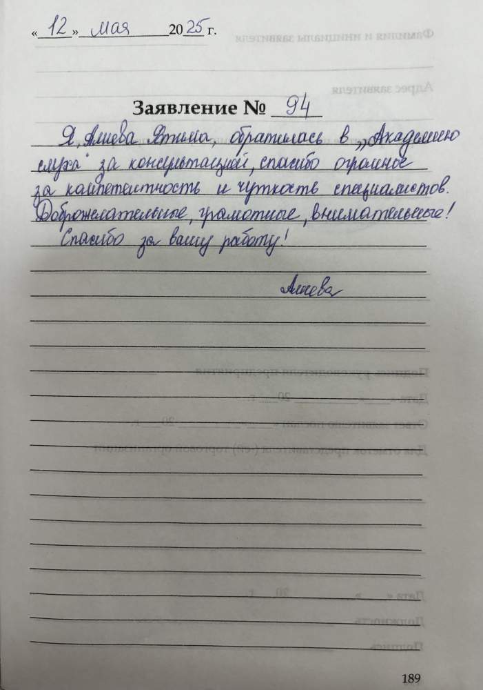 Я, Алиева Фатима, обратилась в «Академию Слуха» за консультацией, спасибо огромное за компетентность и чуткость специалистов. Доброжелательные, грамотные, внимательные! Спасибо за вашу работу!