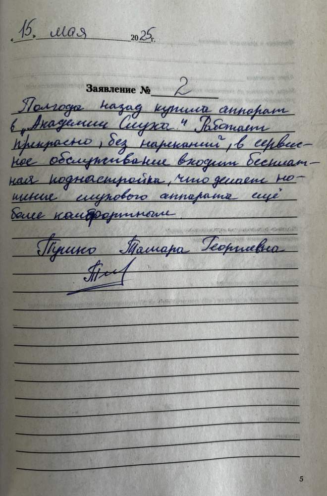 Полгода назад купила аппарат в «Академии Слуха». Работает прекрасно, без нареканий, в сервисное обслуживание входит бесплатная поднастройка, что делает ношение слухового аппарата еще более комфортным.
