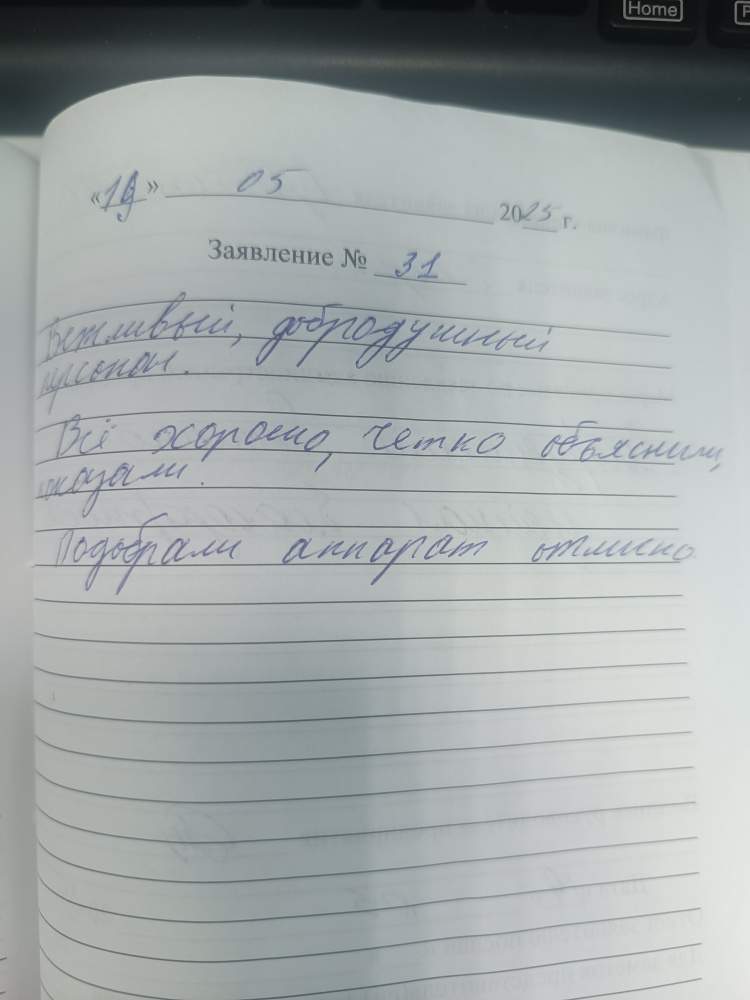 Вежливый, доброжелательный персонал. Всё хорошо, четко объяснили, показали. Подобрали аппарат отлично.