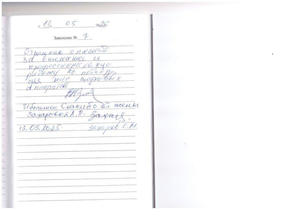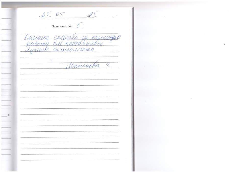 Большое спасибо за квалифицированную работу. Прошу поощрить сотрудников. Еще раз спасибо!