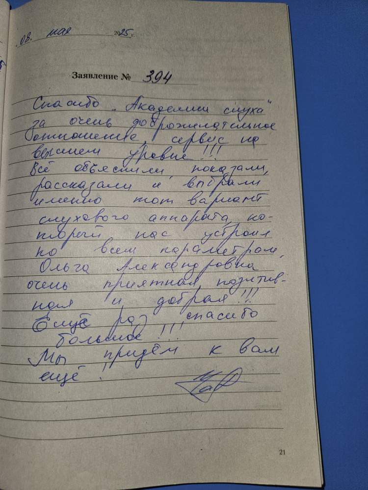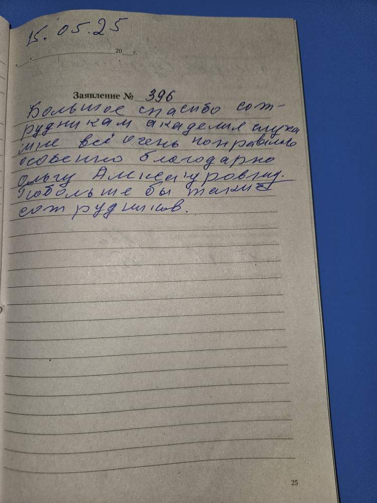Большое спасибо сотрудникам академия слуха мне всё очень понравилось особенно благодарно Ольгу Александровну. Побольше бы таких сотрудников. , г. Киров