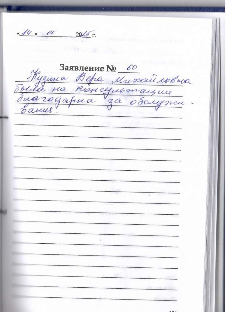Кузина Вера Михайловна была на консультации благодарна за обслуживания