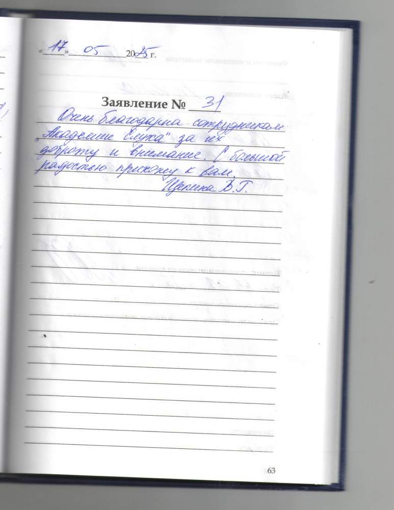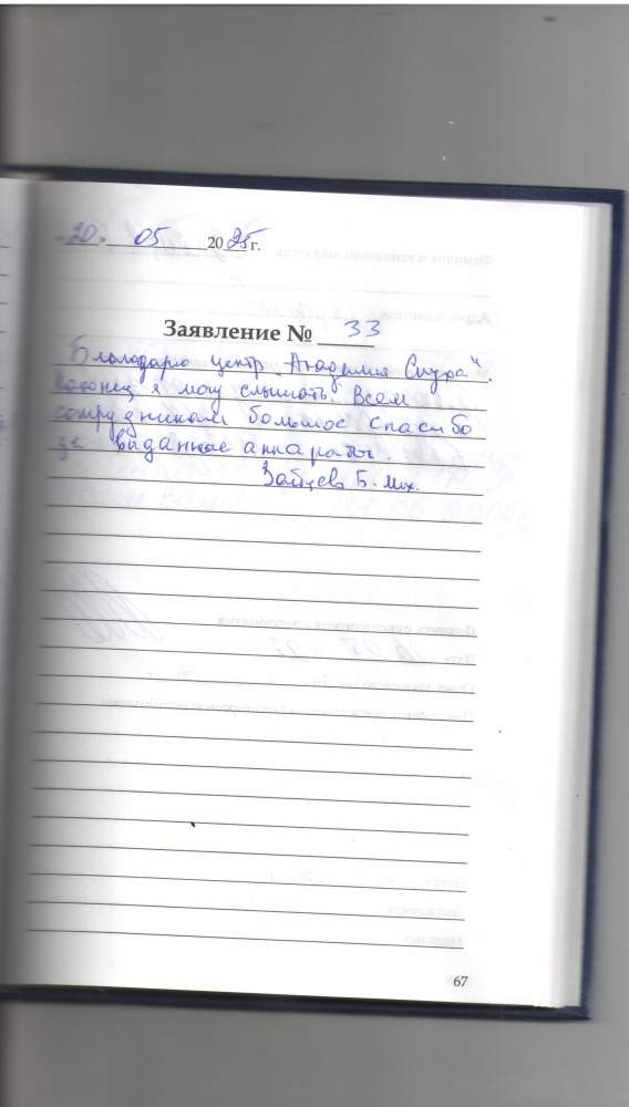 Благодарю центр Академия Слуха .Наконец я могу слышать. Всем сотрудникам большое спасибо за выданные аппараты.