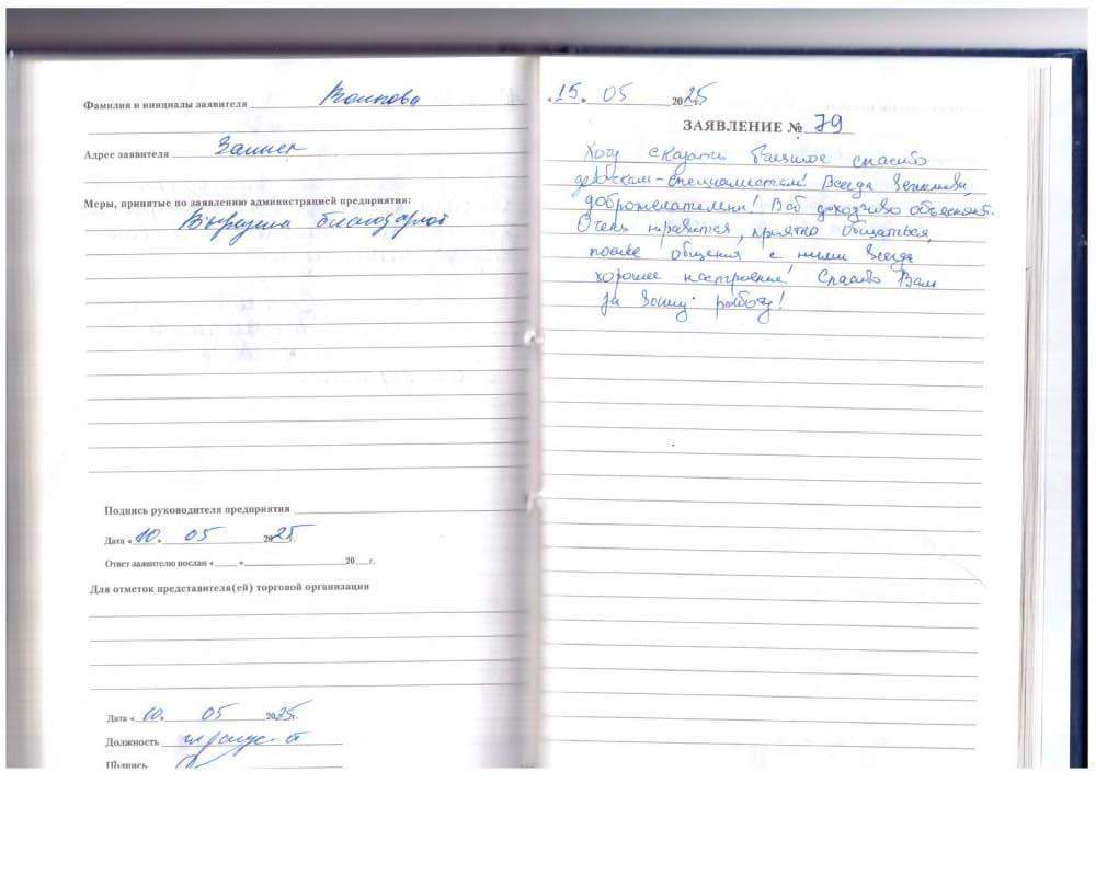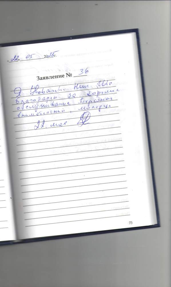 Я , Новалина Нина Ивановна благодарна за хорошее обслуживание. Персонал внимательный, молодцы.