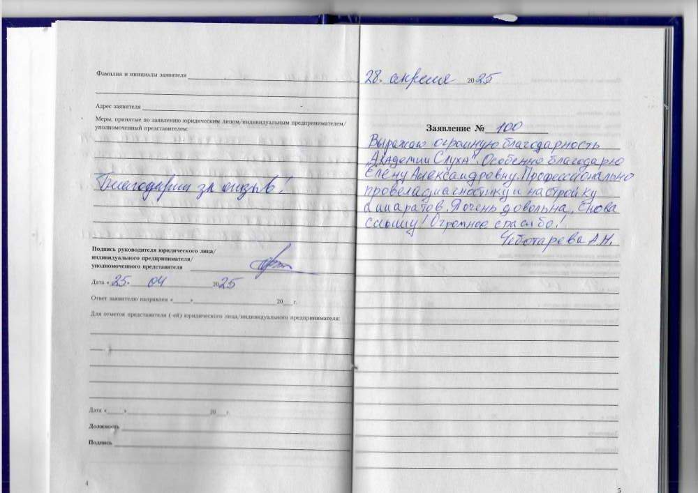 Я, Мария Сергеевна, выражаю огромную благодарность «Академии Слуха». Приятные сотрудники, внимательные! Спасибо большое за ваше терпение!