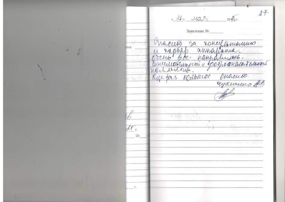Спасибо за консультацию и подбор аппарата. очень все понравилось. Внимательный и доброжелательный коллектив. Ещё раз большое спасибо.