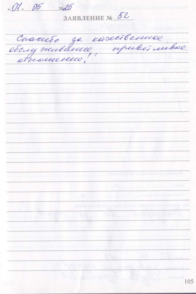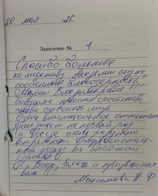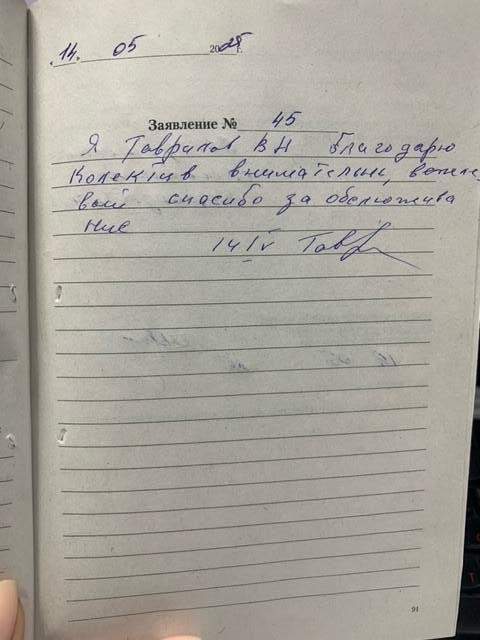 14.05.2025 Гаврилов В.Н. Я Гаврилов В.Н. благодарю коллектив внимательный вежливый. Спасибо, за обслуживание