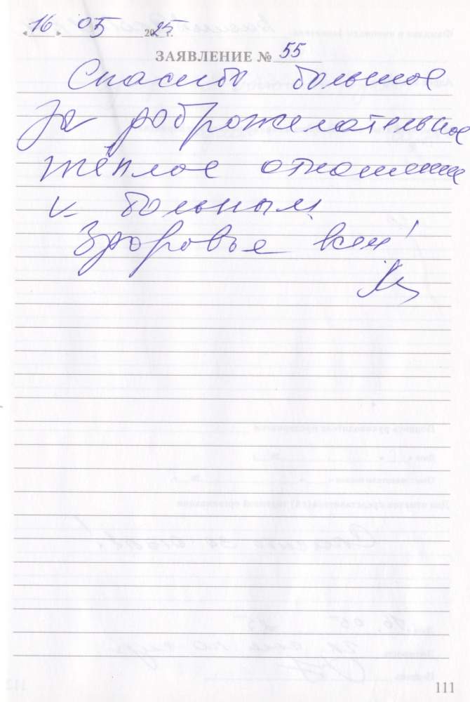 Спасибо большое за доброжелательное, теплое отношение к больным. Здоровья всем!