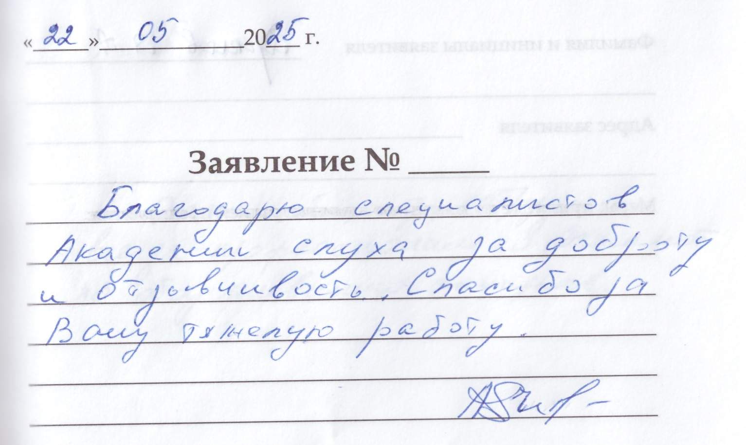 Благодарю специалистов Академии слуха за доброту и отзывчивость. Спасибо за вашу тяжелую работу.