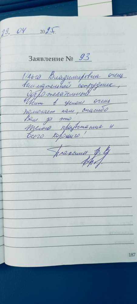 Ольга Владимировна очень внимательный сотрудник, доброжелательный. Центр в целом помогает нам, спасибо Вам за это.