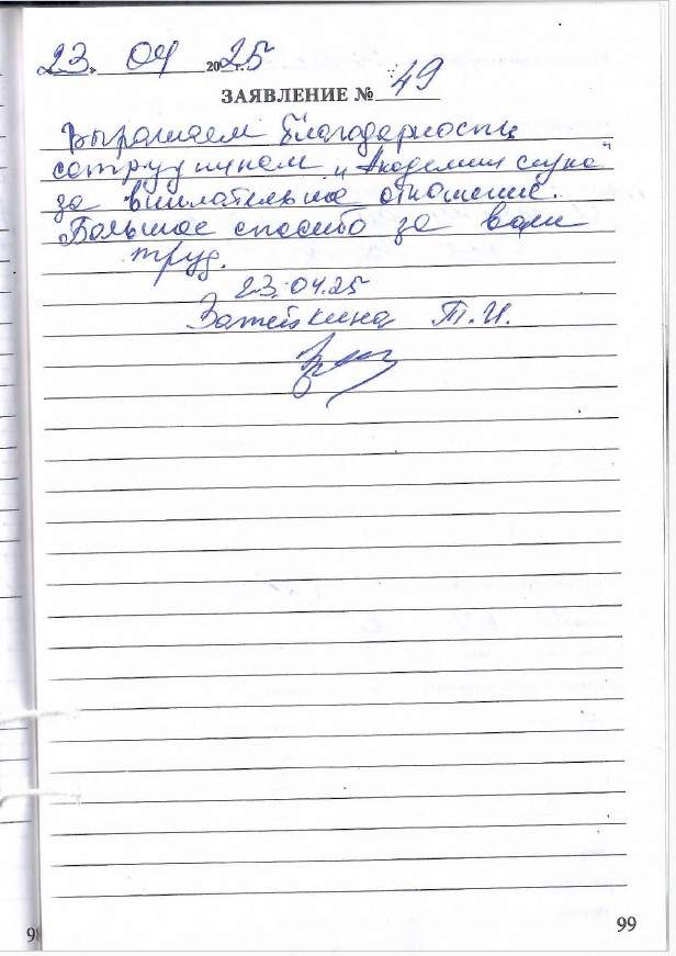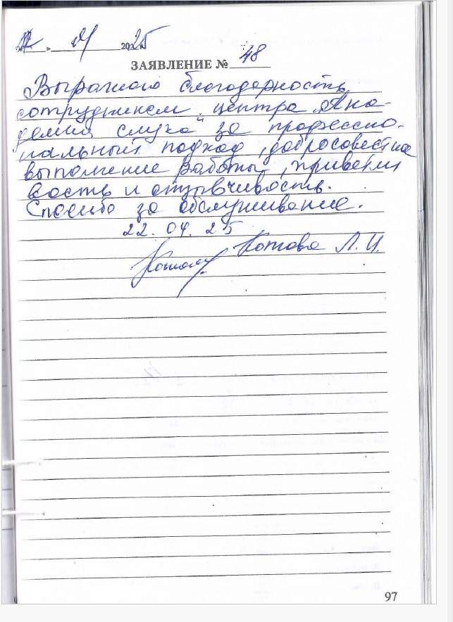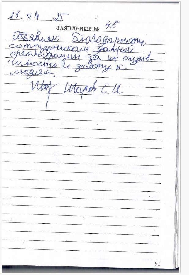 Объявляю благодарность сотрудникам данной организации за их отзывчивость и заботу к людям.