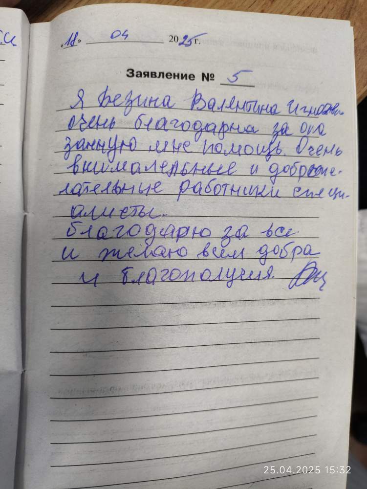 Я,Безина Валентина Игнатьевна,очень благодарна за оказанную мне помощь.Очень внимательные и доброжелательные работники-специалисты.Благодарю за всё и желаю всем добра и благополучия.