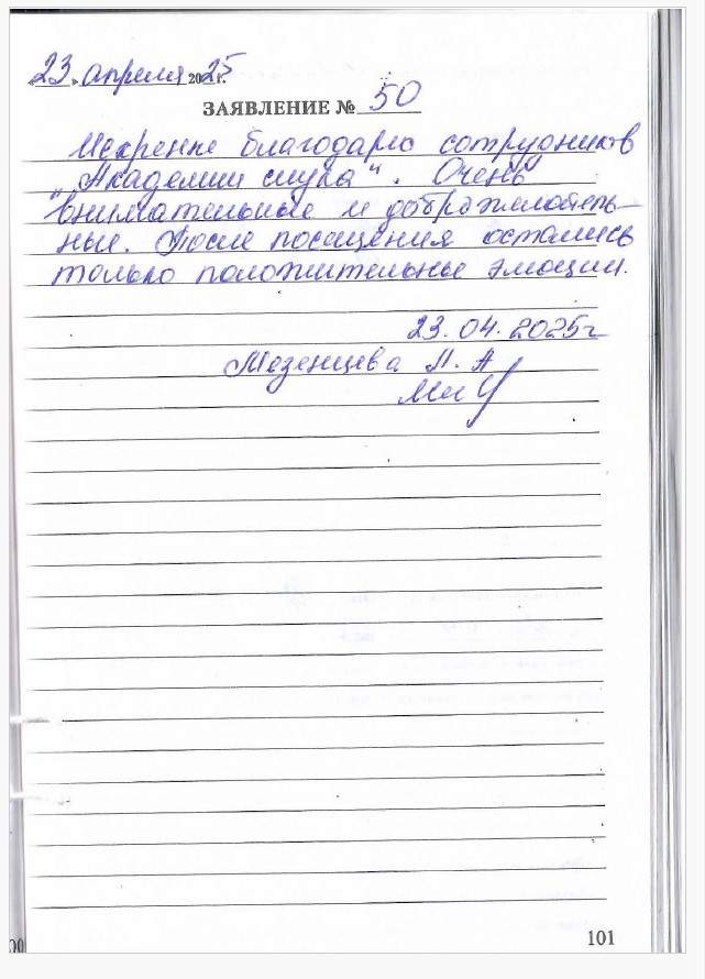 Выражаем благодарность сотрудникам «Академия слуха» за внимательное отношение. Большое спасибо за ваш труд.