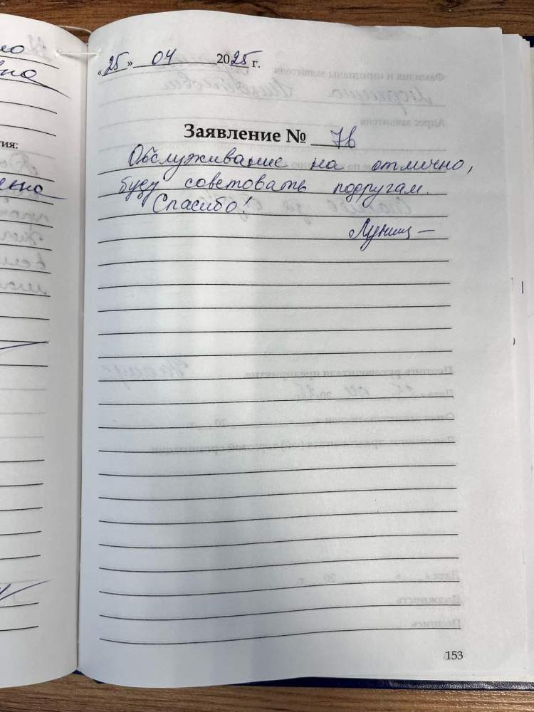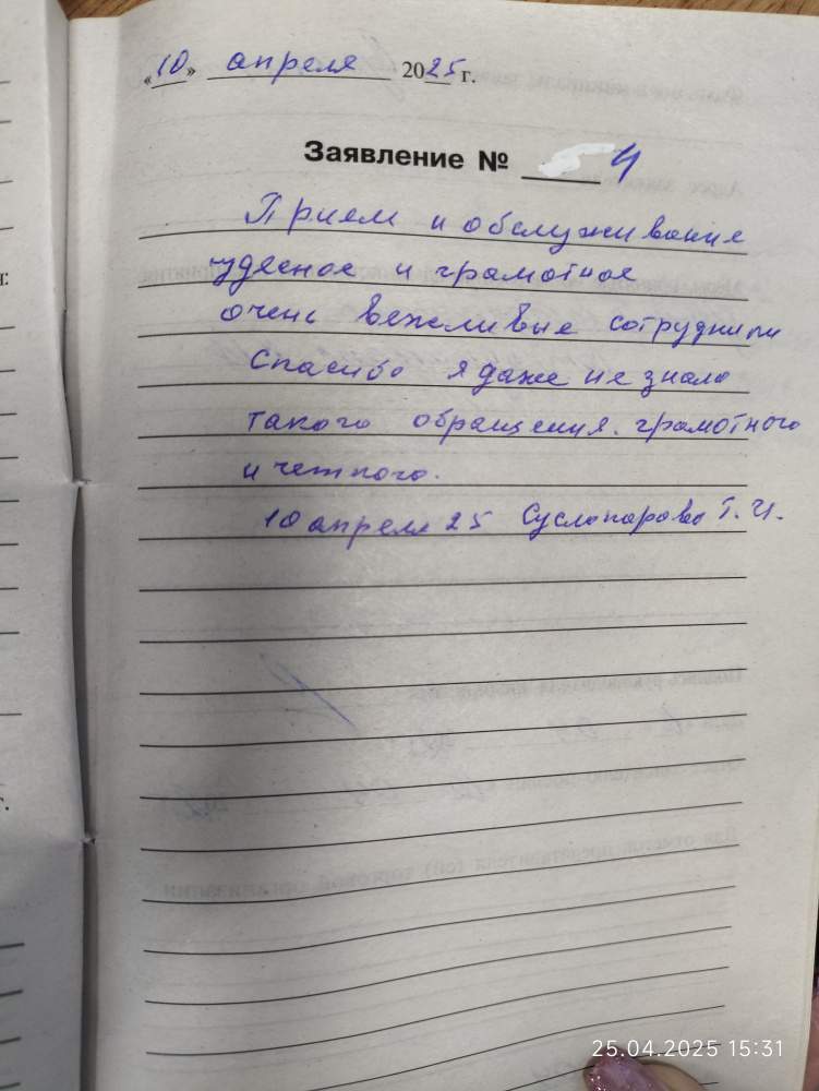 Приём и обслуживание чудесное и грамотное.Очень вежливые сотрудники.Спасибо,я даже не знала такого обращения- грамотного и чёткого.