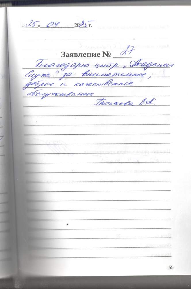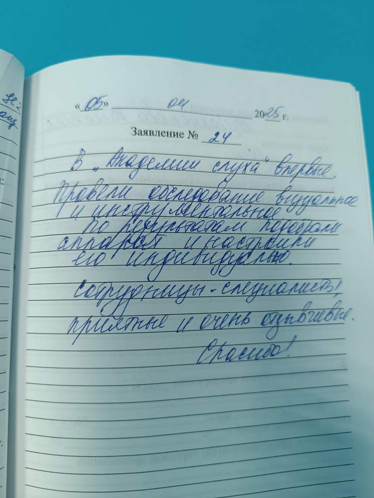 Благодарю центр "Академия Слуха" за внимательное, доброе и качественное обслуживание