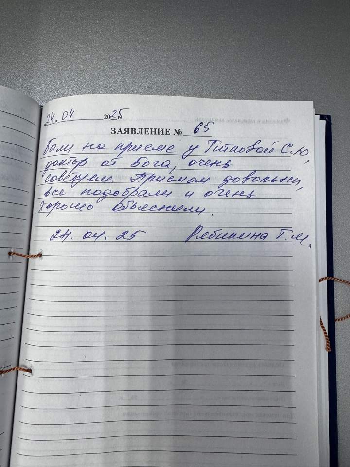 Были на приеме у Титковой С.Ю. доктор от бога, очень советуем. приемом довольны, все подобрали и очень хорошо объяснили.