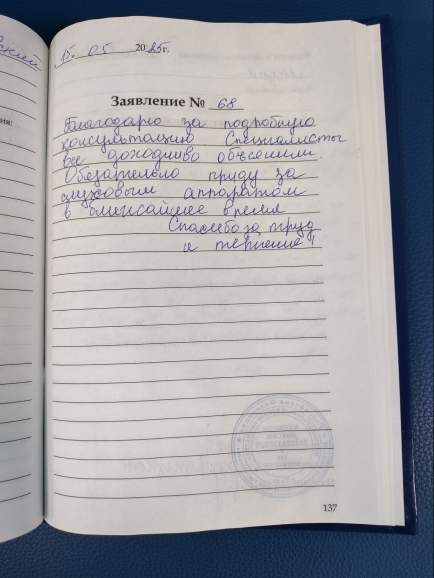 Спасибо за настройку слухового аппарата. Все рассказали, объяснили! Спасибо!