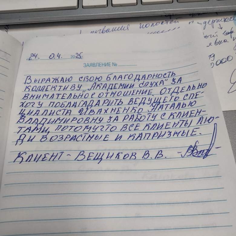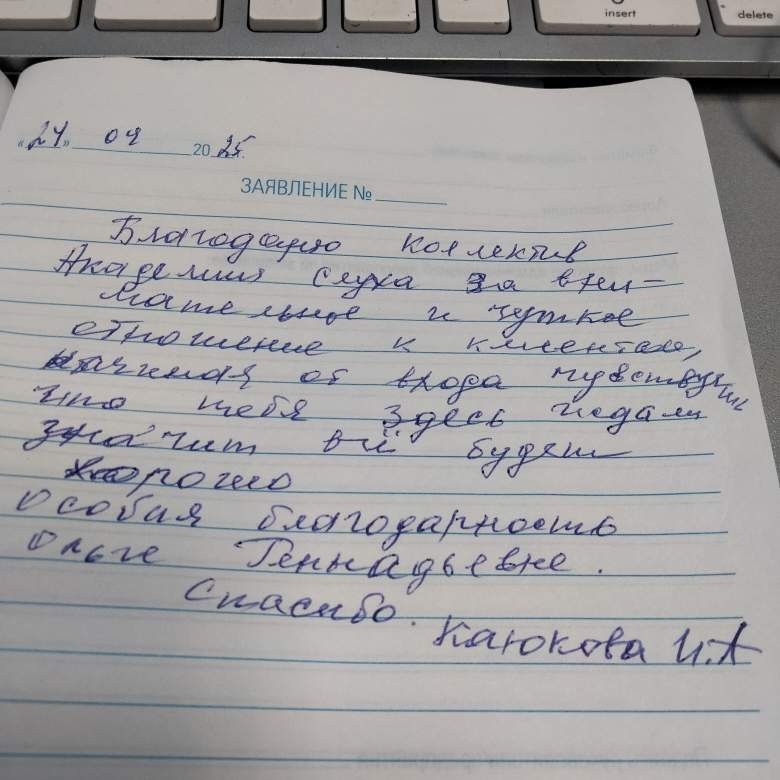Выражаю свою благодарность коллективу "Академии слуха" за внимательное отношение. Отдельно хочу поблагодарить ведущего специалиста Ивахненко Наталью Владимировну за работу с клиентами, потому что все клиенты люди возрастные и капризные.